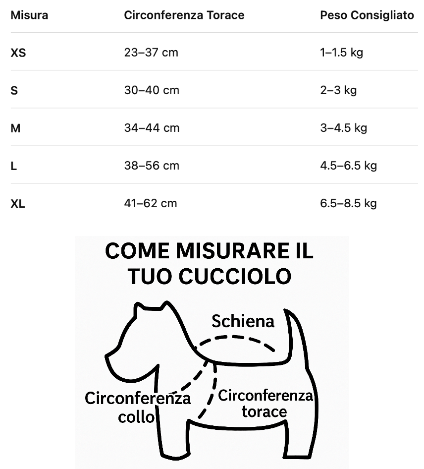 Hai sbagliato taglia? Succede anche ai migliori! 🐾 Scrivici a info@dreamypets-shop.com e ti aiuteremo noi con il cambio. Se il tuo articolo dovesse arrivare difettoso o diverso da quanto ordinato, provvederemo a sostituirlo senza alcun costo.